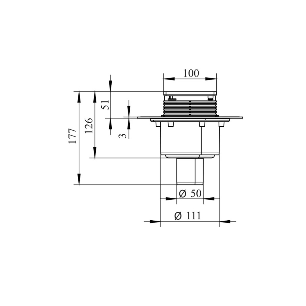 - ✓ Компактный размер 100×100 мм облегчает размещение трапа в стеснённых условиях и в небольших душевых.