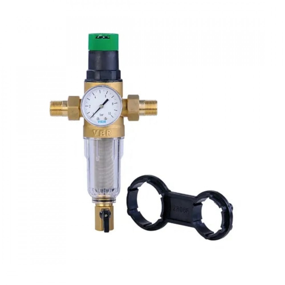 Фильтр самоочищающийся с редуктором давления и манометром 1/2" для холодной воды VIEIR