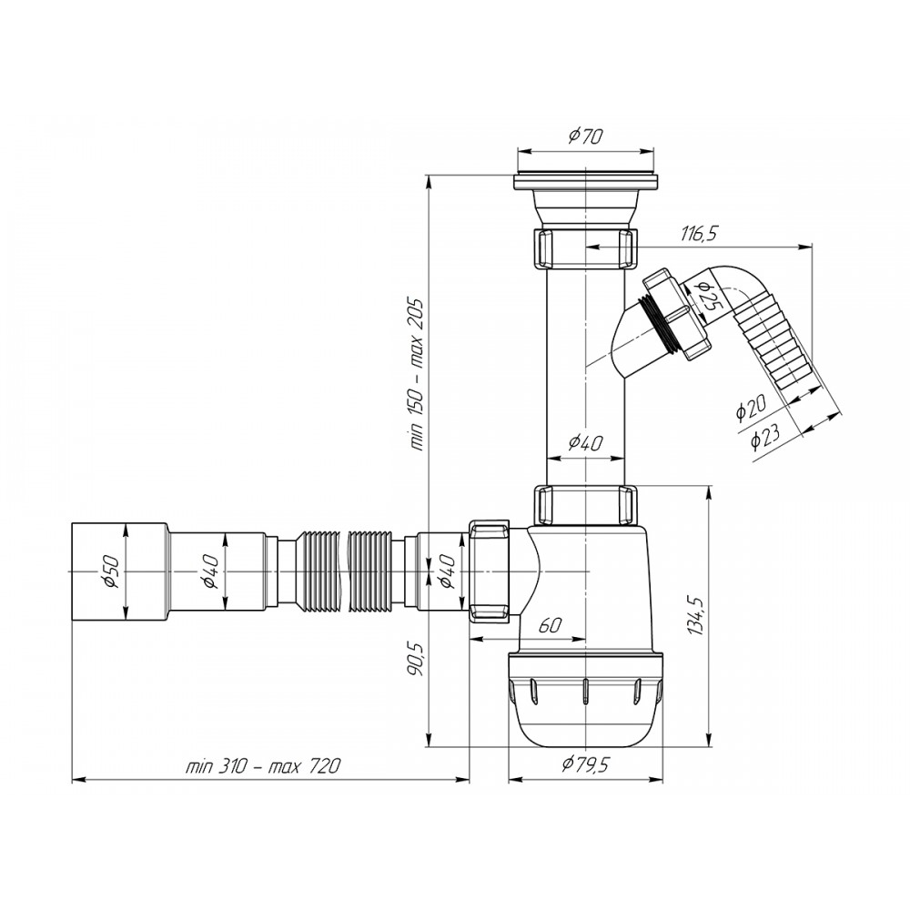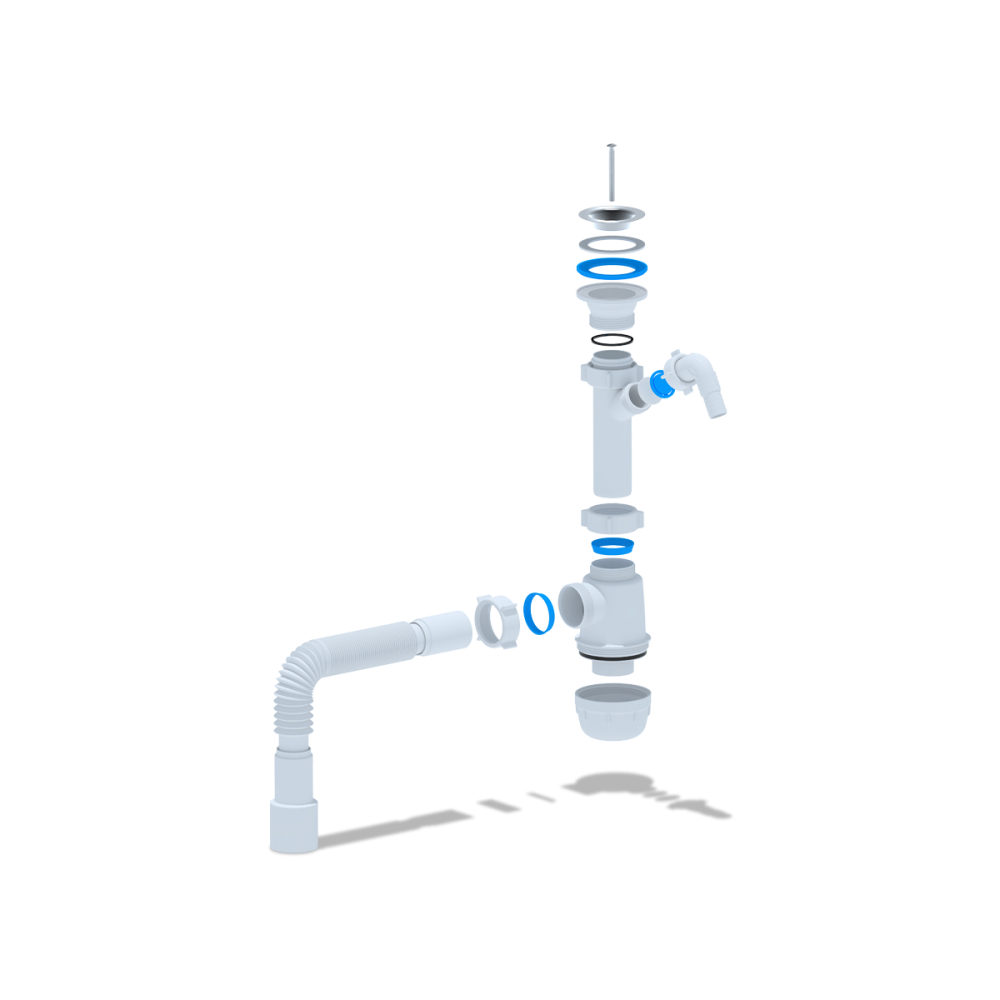 • ✓  Гибкая труба облегчает установку и позволяет адаптировать сифон под особенности монтажа, обеспечивая надёжное соединение.