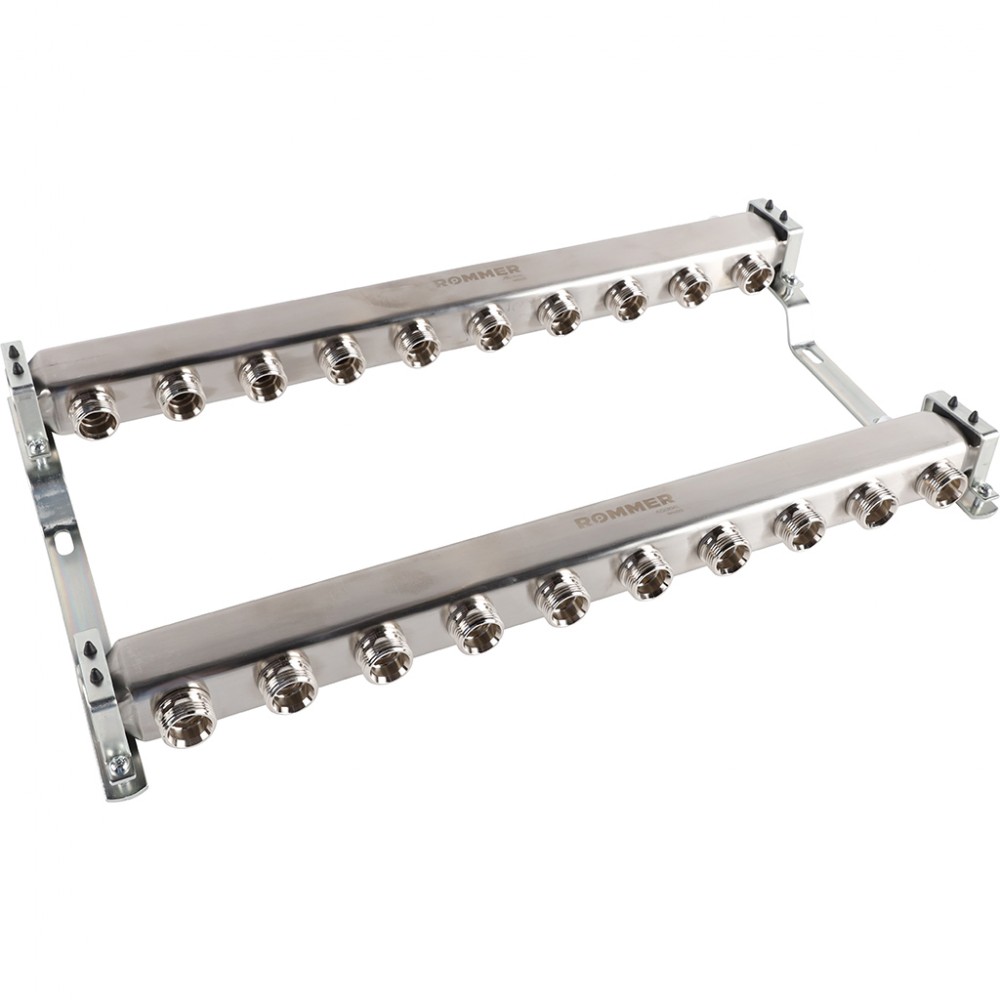 Коллектор из нерж. стали 1"x3/4" ROMMER для радиаторной разводки 10 вых.