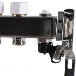 Коллекторный блок состоит из подающего и обратного коллекторов. Подающие коллекторы в зависимости от назначения оснащаются расходомерами либо запорно-балансировочными клапанами, обратный коллектор оснащен терморегулирующими клапанами для ручного или автоматического управления (при установке электротермических приводов), также в комплекте прилагаются кронштейны для монтажа коллекторов на конструкционные элементы зданий или размещения вколлекторном шкафу. Присоединение трубы к патрубкам коллекторов производится при помощи фитингов типа «Евроконус».