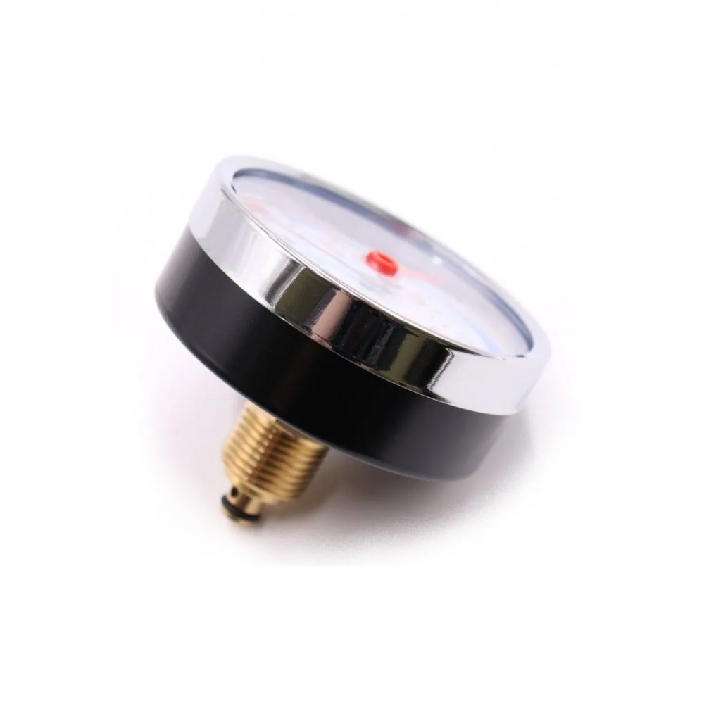 Термоманометр с аксиальным (осевым) подключением предназначен для комплексного контроля параметров теплоносителя в гидравлических системах. Прибор одновременно отображает текущие значения давления и температуры на сдвоенном циферблате. Корпус диаметром 80 мм изготовлен из стали, присоединительный штуцер 1/2" — из латуни.