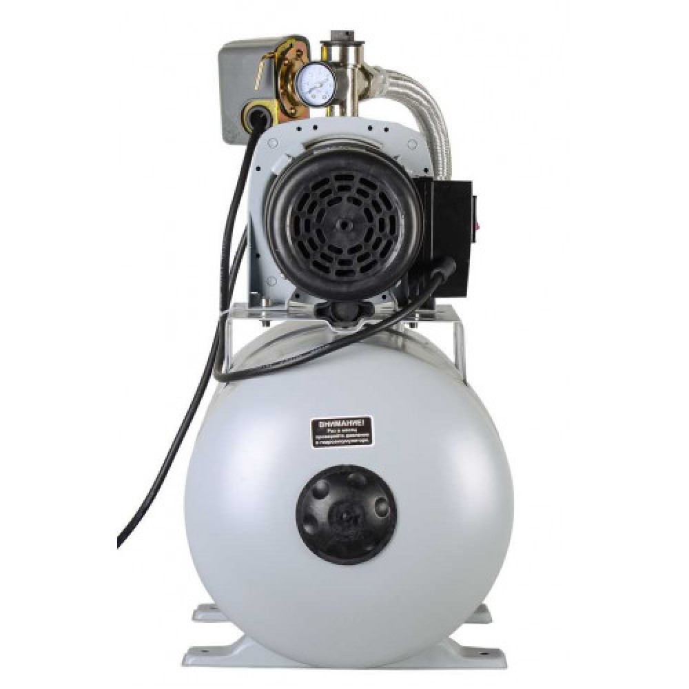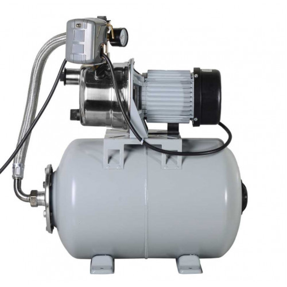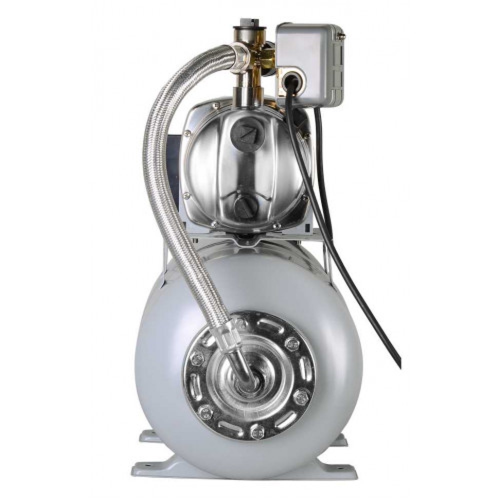 Гидроаккумулятор 24 л работает как буфер при кратковременных разборах воды, а насосная часть выполнена в корпусе из нержавеющей стали; допустимая концентрация твердых частиц в воде - до 150 г/м³.