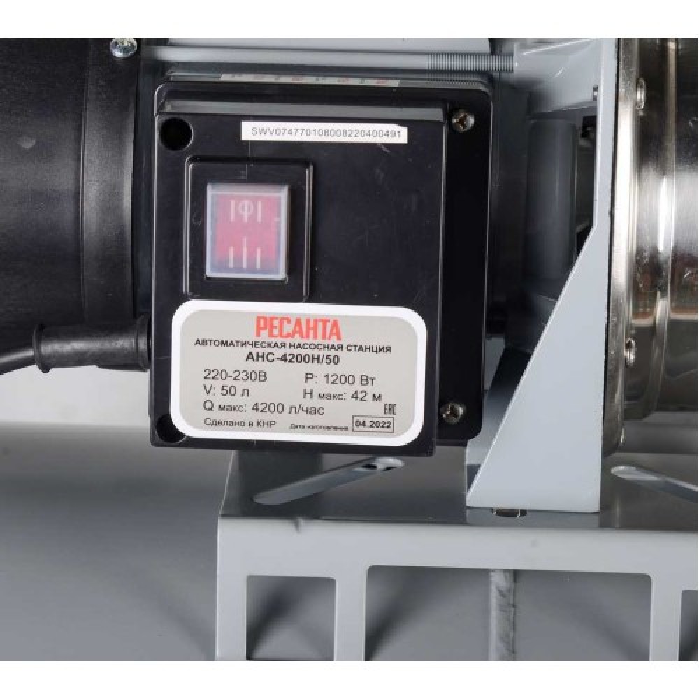 Автономная насосная станция Ресанта АНС-4200Н/50 мощностью 1200 Вт, максимальным напором 42 м и подачей до 4200 л/ч (≈70 л/мин) предназначена для автоматического водоснабжения дома и дачи с поддержанием давления в системе.