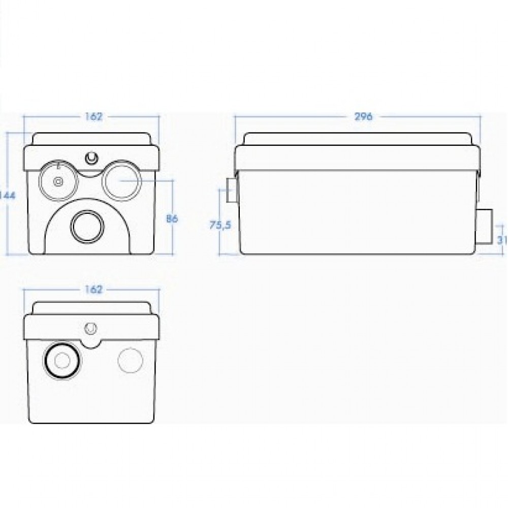 ✓ Насос-измельчитель спрятан в герметичный и качественный пластиковый корпус. Снаружи имеются отверстия для подвода и вывода сточных вод.