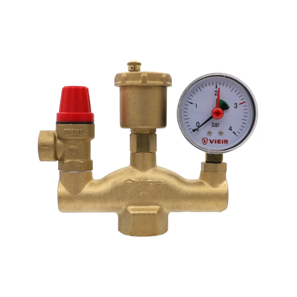 - ✓ Обеспечивает защиту от превышения давления, отвод воздуха и газов из системы и контроль давления по манометру
