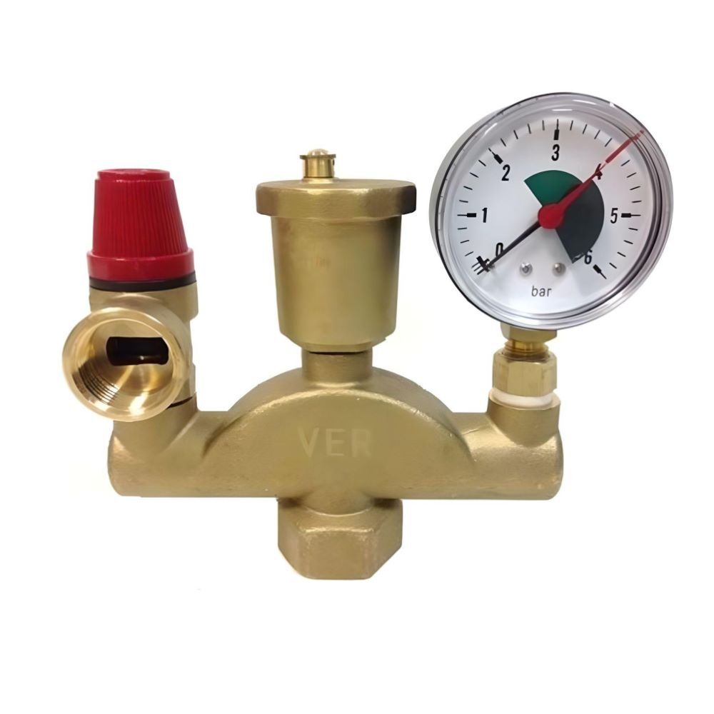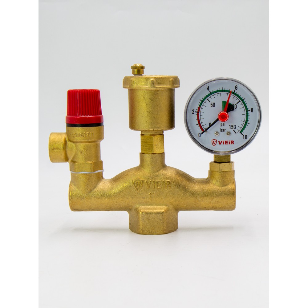 Группа безопасности котла VIEIR AQ1063 1" 3 бар применяется в закрытых системах отопления и служит для защиты и контроля работы котлов мощностью до 100 кВт.