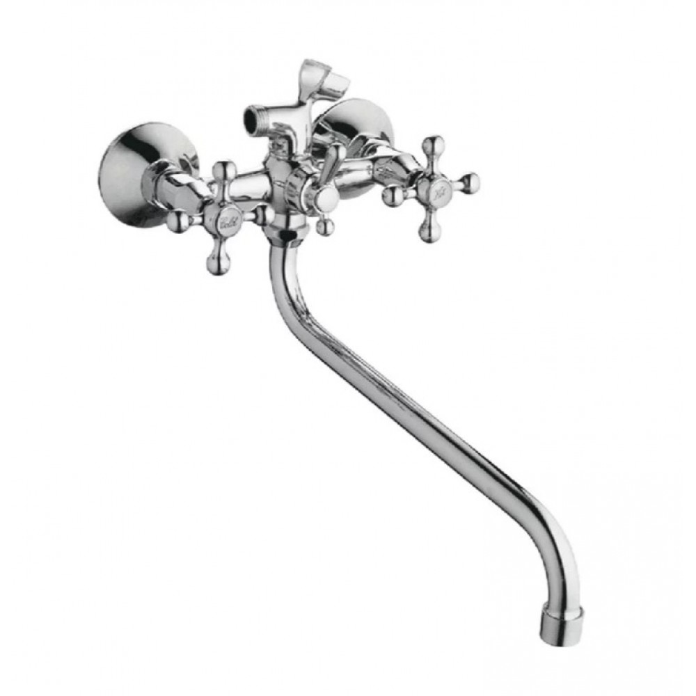 A2208 Смеситель Fashun д/ванны, латунный, с длинн.изливом, с лейкой и шлангом, хром