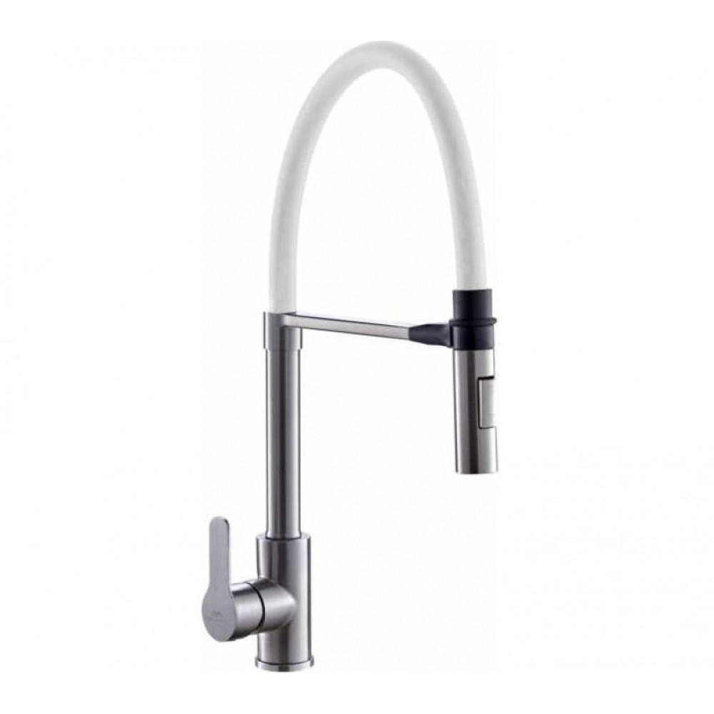 A54511-8 Смеситель из нерж.стали, д/кухни, гибкий излив, магнитный фиксатор, БЕЛЫЙ/САТИН