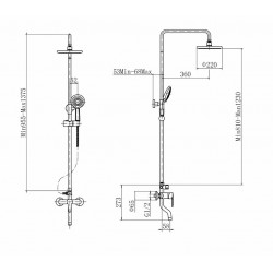 PL2401-7 Душевая система Fashun Plstart штанга H=810-1230 мм ABS пластик, чёрная