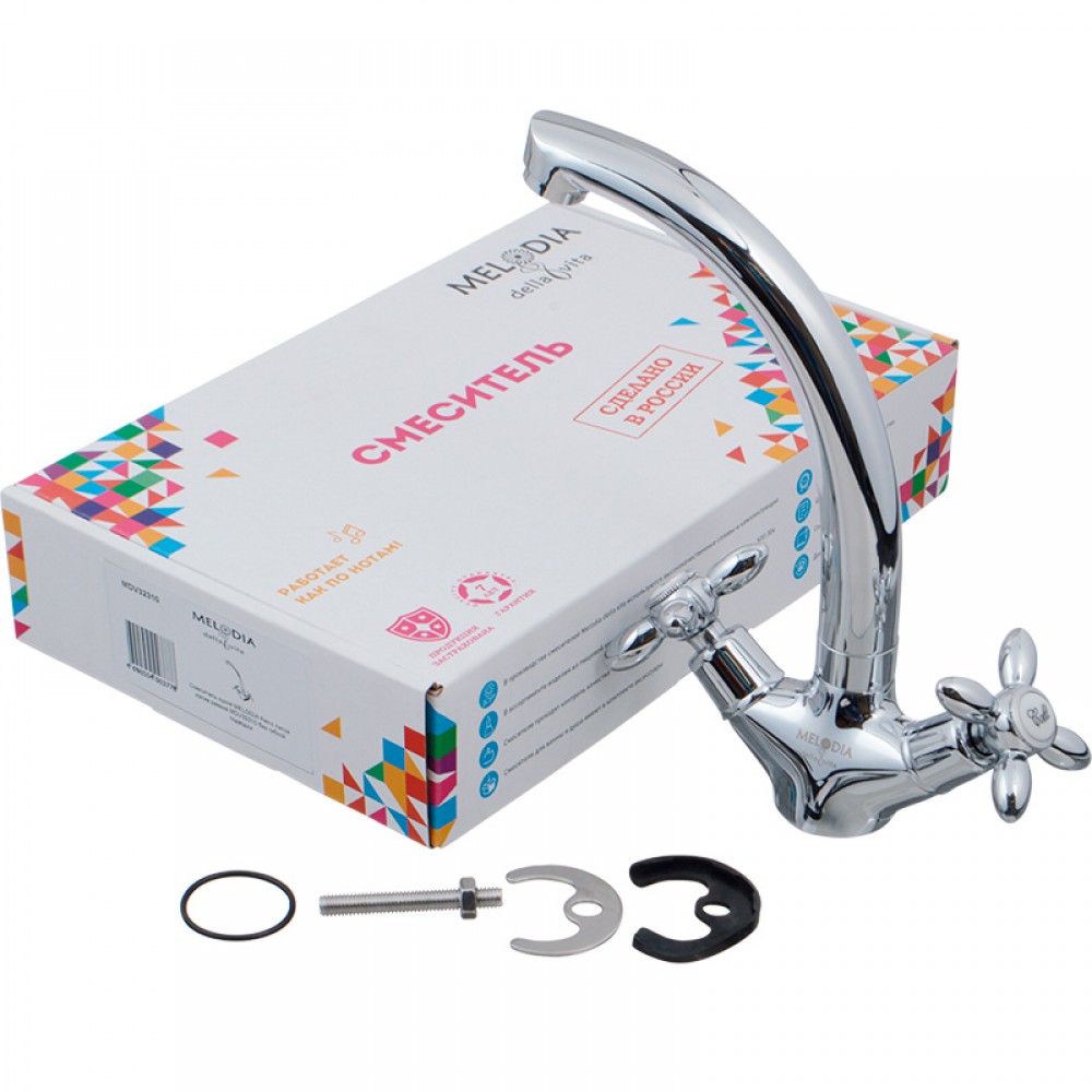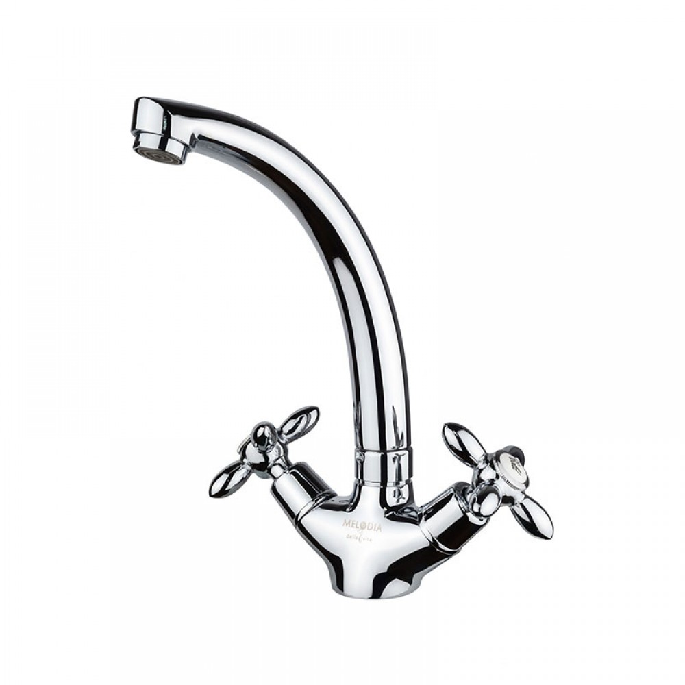 Двухвентильный смеситель для кухни MELODIA Retro MDV32310 отличается прочным литым поворотным изливом и крестообразными ручками управления. Классический кухонный кран создан для раковин и моек, где важен традиционный дизайн и высокая надежность металлических элементов.