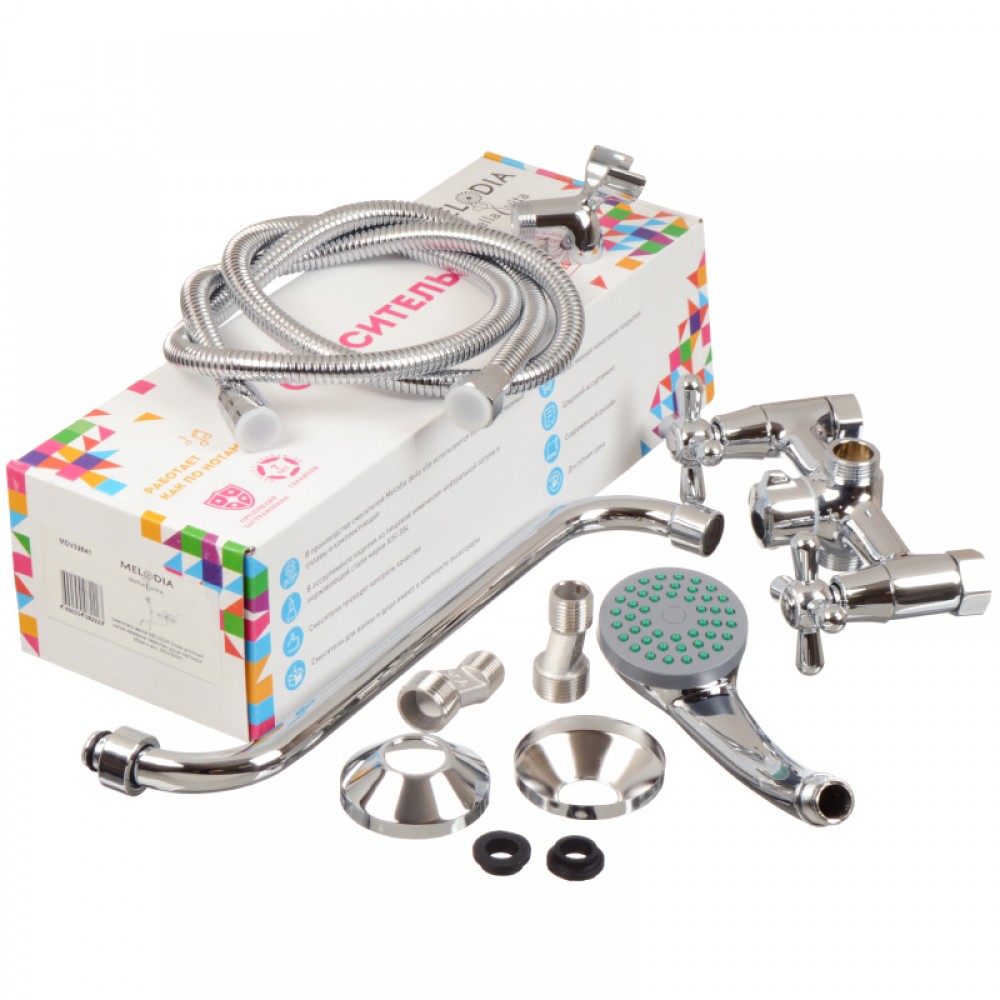 Смеситель для ванны MELODIA Cross MDV32541 представляет собой классическую двухвентильную водоразборную арматуру, востребованную благодаря привычному управлению и высокой ремонтопригодности. Отличительной чертой устройства являются пластиковые маховики типа "крест", обеспечивающие надежный хват даже влажными руками.