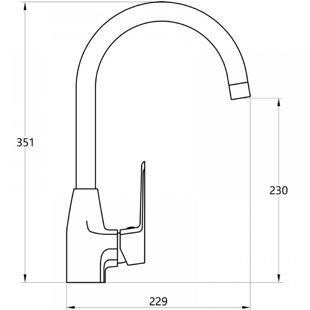 - ✓ Форма излива: высокий дугообразный (R-излив)