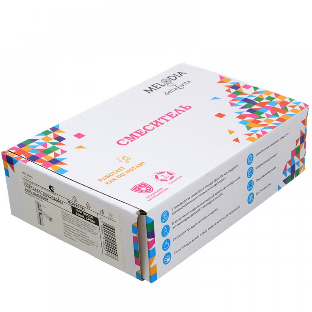 Смеситель для умывальника MELODIA Aria MDV35721 оснащен высоким изливом для комфортного использования с накладными и глубокими раковинами. Однорычажный кран для раковины оборудован надежным керамическим картриджем Wanhai/Mingdi диаметром 35 мм, который точно смешивает потоки горячей и холодной воды.