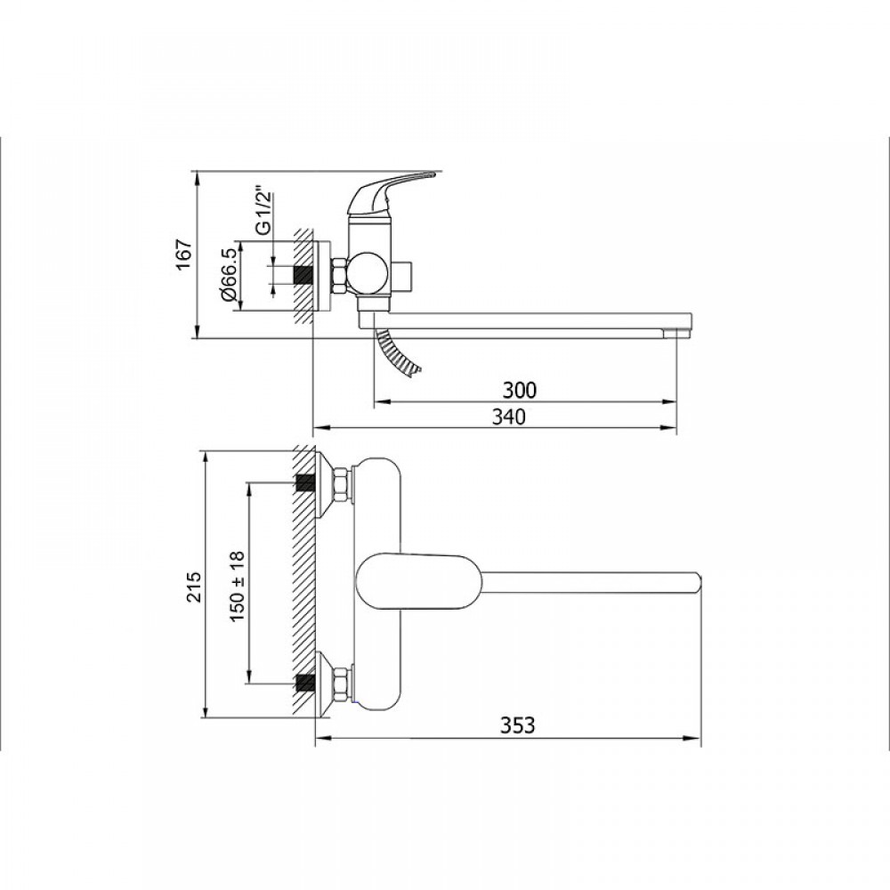 - ✓ Межцентровое расстояние: 150 мм