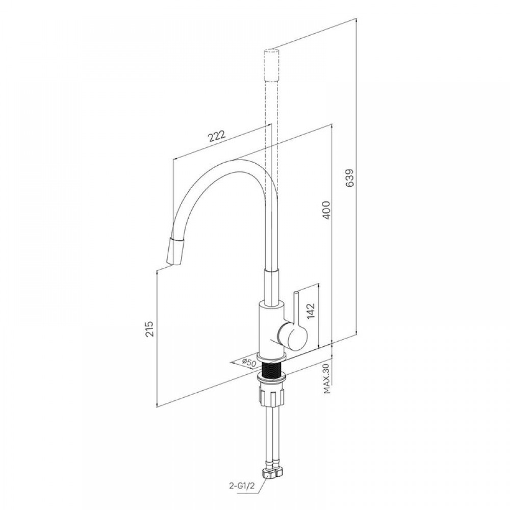 - ✓ Гибкий излив позволяет легко достать до труднодоступных мест в раковине.