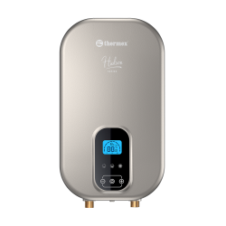 - ✓ Комфортное управление. На лицевой стороне расположен крупный дисплей с яркими индикациями температуры, скорости потока воды, режимами и мощностью нагрева. На панели расположены кнопка включения и регулировки температуры, а также выбора режима, благодаря чему управлять Thermex Hudson несложно, но интуитивно-понятно. Вся необходимая информация о работе и безопасности выводится на дисплей, а подсветка яркая и хорошо видна даже при плохом освещении.