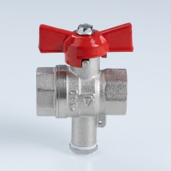 Шаровой кран VT.128.N оснащен силуминовой ручкой-бабочкой с эпоксидной эмалевой окраской. Кран оснащен штуцером для подключения датчика температуры погружного типа. Применяется в составе узлов учета расхода тепловой энергии и арматурных модулей для водяного теплого пола. Допустимая температура рабочей среды для данного крана – от +1 до +110 °С.