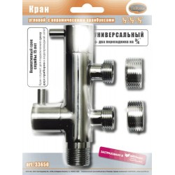 Кран угловой Terma универс.1/2" (с перех. на 3/4") керам. кранбукса (два выхода) хром 33650.
